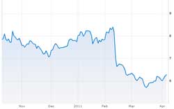 過去6カ月のHTC(左)とNokia(右)の株価推移