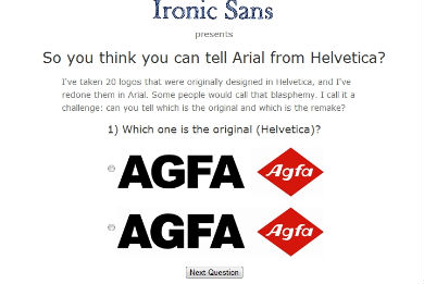 Helveticaでデザインされたロゴと、フォントをArialに変えたロゴを並べて、どっちがどっちかを当てるクイズに挑戦してみませんか。全部で20問、けっこう難問です。