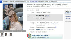 奇抜なデザインで注目を浴びた英ベアトリス王女の帽子がオークションサイトeBayに出品され、5月22日に8万1100ポンド(1000万円超)で落札された。