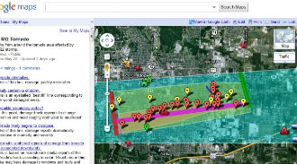 Googleマップには、竜巻の経路が書き込まれている。