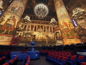 投映イメージ画像:VR作品「ウスペンスキー大聖堂」 製作・著作:Moscow Kremlin Museums/TBS/凸版印刷株式会社 協力:電通