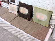 アテックスのブースでは、暖かくしたり、冷たくしたりできる座布団や椅子、ベッドなどのコンセプトモデルが注目を集めていた。