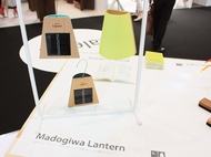 窓際につるして太陽光で充電するLEDランプ「Madogiwa Lantern」、ソーラー充電器「ソーラーゴリラ」、ファン型ソーラー充電器「ソーラーファン」など、エコ関連製品も展示されていた。