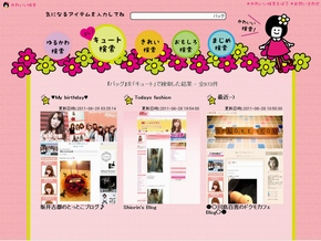 現在は検索対象がブログのみとなっており、例えば「バッグ」(bag)を検索すると、5つの“かわいい”の系統のうち選択した分野に当てはまるバッグを紹介したファッション系のブログが表示される。芸能人ブログなど、バッグの写真だけでなく、バッグを持っている有名人の写真を見ることができるため、流行の“かわいい”も検索結果から分かるのが特徴となっている。