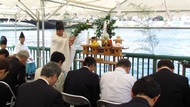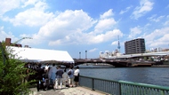 体験クルーズに先立って、浜町船着き場がある隅田川テラスで「両国の川開き」が行われた。「両国の川開き」は享保(きょうほう)18年(1733年)に、水難で亡くなった人の霊を弔う「川施餓鬼」を目的として始まり、後に花火を上げる行事になった。今回、約100年前から途絶えていたこの行事を再開し、神田明神による安全祈願を行った。