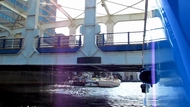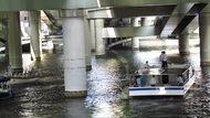 隅田川に戻ると、清洲橋、隅田川大橋をくぐり、永代橋の手前で右に曲がって日本橋川に入る。ここには最大の難関である豊海橋が待ち構えていた。橋の高さが極端に低いため、船の屋上にいたスタッフが船内に退避する。近づけば近づくほど分かるその低さに、スタッフから「ギリギリだなあ」という声が漏れ、船に緊張感が走る。無事に通り抜けられそうだと分かると、乗客からは拍手が起こった。
