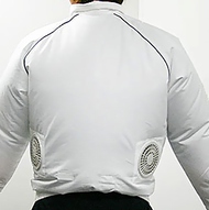 売り切れが出るほどの人気になっている「空調服」。服の内側に組み込んだファンで体に風を送り、汗を気化させて気化熱で体温を下げる。長時間使うための大型バッテリーも販売されている。
