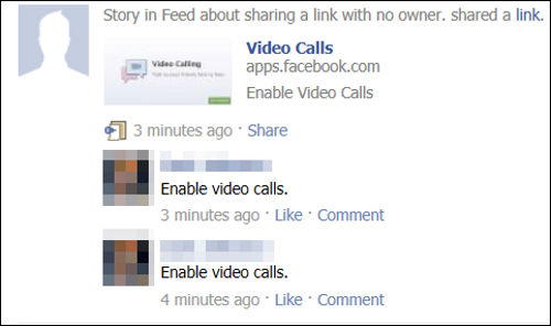 Facebookのビデオチャット機能を装って、ウォールにスパムメッセージをばらまくアプリが出現した。