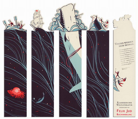 巨大なくじらに挑み、荒れる海へと放り出される人々……。物語性のあるこんなしおりがほしい!