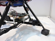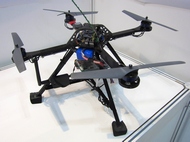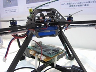 野波研究室のブースでは、被災地で活躍したロボットも紹介されていた。ビデオカメラによる空撮機能を持った6発ローター型の電動ヘリコプターだ。