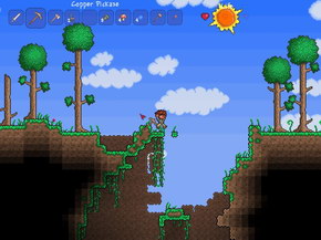 グラフィックはスーパーファミコン風のドット絵で、「Minecraft」と違ってサイドビュー視点を取り入れている点が大きな特徴。またモンスターと戦ってレアアイテムを集めたり、手に入れた鉱石で道具をアップグレードしたりといったハック&スラッシュの要素もあり、「Minecraft」にアクションRPGの楽しさを加えたような内容となっています。