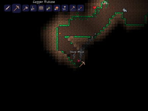 洞窟の奥で採掘中。行き止まっても、ピッケルさえあればどこまでも掘り進んでいける