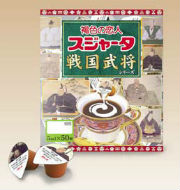 ポーションの上蓋部分に織田信長や加藤清正、武田信玄など戦国時代の武将60人の肖像画と説明文をプリント。パッケージ外袋裏面には「戦国時代とは」「本能寺の変」「関が原の戦い」の説明を掲載する。