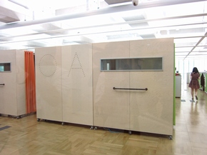 OA機器のホコリがオフィス内に飛ばないように壁で覆っているという