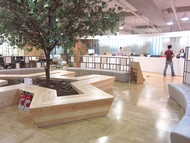 コミュニケーションを生むためのスペース「ハイブ」。ここで井戸端会議が開かれる