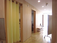 デザインはほかのフロア以上に木を重視したものになっており、保健室に使われている木はビル内で最も質のいいものが使われているという。