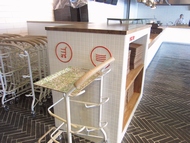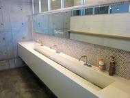 また4階のカフェには、ドリンクカウンターの前にカップを洗うための洗い場がある。1日に2500杯もの注文があるため、紙コップを使うのはエコでないとして、NHNは社員にマグカップを配布している。しかしカップを洗うのが面倒という理由で利用が進まなかったため、洗い場を設けた。