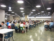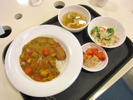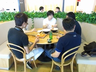 社員食堂は地下にあり、何種類かのコースメニューから選ぶ仕組みになっている。12時半になると社員でいっぱいになっていた。