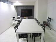 奥は個室タイプの会議室。会議室に行くとき、このスペースを通らなければいけないのがミソ
