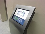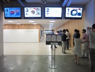 グリーンファクトリーを探検していて面白かったのは、エレベーターの仕組みだ。オフィスフロアに行くエレベーターには「上」「下」のボタンがない。代わりにタッチパネル式ディスプレイがあり、行きたい階をタッチすると乗るべきエレベーターを教えてくれる。エレベーター内には非常ボタンと「開」「閉」のボタンのみがあり、行き先の階を押す必要がない。乗ってから行き先を変更できないのは難点だが、移転前の一般的なシステムより、待ち時間が減ったという。