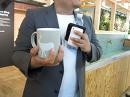 会社から配られているマグカップ。スタッフの後ろが洗い場