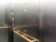 タッチパネル式のディスプレイに行きたい階数を押すと乗るべきエレベーターを教えてくれる。中のボタンは非常用と「開」「閉」のみ
