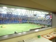 東京ドーム3階は、セレブな雰囲気のプレミアムラウンジが広がるフロアだ。東京ドームホテルが提供するビュッフェも楽しめる。座席もふかふかだ。スーツなど野球観戦とは思えないフォーマルな格好で歩いている人も多い。おいおい、戦いの場にしてはラグジュアリーすぎないか。僕は庶民の味方、そわそわしてしまうよ。