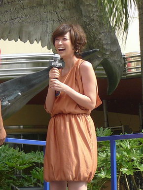 この日の案内役を務めたのは、「モンスターハンター」シリーズの大ファンだというタレントの辺見えみりさん。辺見さんは「ゲームの世界を飛び出して、リアルの世界で狩りに行くとしたら、こんな格好で行きたい」というテーマでチョイスしたという、オレンジのワンピースで登場。さらにスタッフから渡された双剣「王牙双刃」を手に「ひと狩りいこうぜ!」とポーズを決めると、来場者からはひときわ大きな拍手があがっていた。