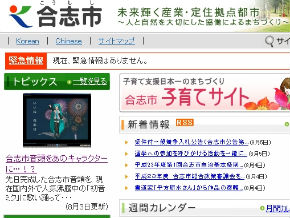 「合志市音頭を現在国内外で人気沸騰中の初音ミクに歌い踊ってもらいました!」「是非ご覧ください☆」と、行政機関にしてはテンション高め。市のサイトのトップページにも、ミクの画像を貼り付けているほど。映像は「MikuMikuDance」と初音ミクの3Dモデルを使って制作しています。