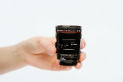 キヤノンのEF 24 105ミリレンズを模して、フォーカスリングや、オート・マニュアルの切り替えスイッチも再現。セラミック製でサイズは一般的なバーのショットグラスと同じくらいで、重みもあるということです。飲み物を飲むだけでなく、メモリカードなどちょっとした小物を入れるのにも使えます。