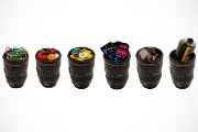 キヤノンのカメラレンズに似せて作ったショットグラスがかわいい。飲み物を飲むだけでなく、小物入れにも使えます。
