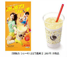 ロッテリアは9月14日から、燃焼力を高めるという新成分をトッピングした「燃焼力 シェーキ(ぶどう風味)」を販売する。