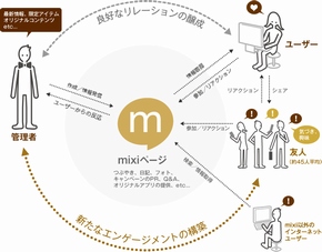 「mixiページ」は企業やお店、有名人やキャラクターなどの専用ページが簡単に作成できるサービス。バンドやサークル、ペットのページなど、幅広い利用が見込まれる。