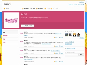 無料です:Facebookページっぽい「mixiページ」スタート ネットに全体公開も可能