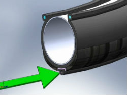 PumpTireは一見普通のタイヤのようですが、大きなバルブが付いていて、外周を細いチューブが囲んでいます。自転車を走らせている間に、バルブから空気を取り込んで、チューブを通してタイヤ内に送り込む仕組みです。あらかじめ設定した空気圧に達すると、バルブがそれを感知して空気の送り込みを止めるようになっています。普通のリムで使えるそうです。