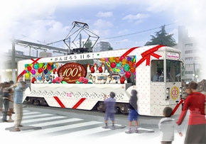 ろうそくの明かりをともしたバースデーケーキが荒川線を走る――都営交通の創業100周年を記念して、都電荒川線で花電車を運行する。