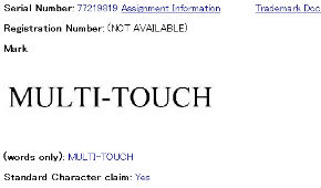 「Multi-touch(マルチタッチ)」を商標として登録しようとしたAppleだが、米特許商標局に退けられた。