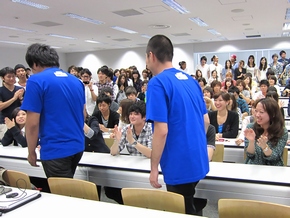 学生からの質問もあり、「mixiとの違いは何ですか?」という質問には森岡氏が「(Facebookは)実名登録というのが圧倒的に違う」と回答。mixiはニックネームが多いため、本当に知っている人かどうかが分かりにくいが、Facebookなら実名で分かりやすく、スムーズにつながることができると話した。「気になるあの子がFacebookをやっていなかったら、直接行くべきですか?」という質問が出ると会場は笑いに包まれ、内間さんが「行くべきじゃないですか!」と背中を押した。