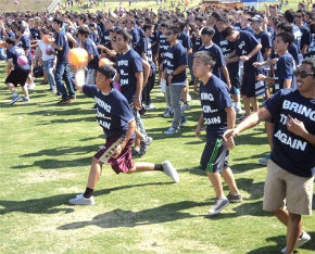 過去の最高記録2136人を破るため、カリフォルニア大学アーバイン校などの協力で実施されました。試合の動画が公開されていますが、4000人が1000個のボールを投げ合うさまはちょっとしたカオス。審判が大変そうですが、結局青いユニフォームのチームが黄色いユニフォームのチームに勝ったそうです。