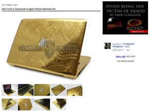 黄金のボディにダイヤモンドのAppleロゴ。ハイテク製品をゴージャスに改造する企業Computer Choppersが、金に輝くMacBook Proを披露しています。ま、まぶしいっ。