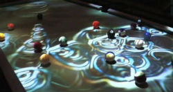 ビリヤード台の上をボールが転がると、まるで水面を転がるように波紋が広がっていく。そんなエフェクト付きビリヤード台がかっこいい。