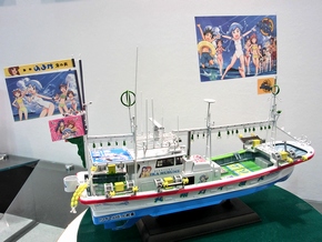 展示されていたのは「ポルシェ911GT3R初音ミク X GSRポルシェ」「Su-33 フランカーD」「AV-8B ハリアーII プラス」などのアイドルマスター戦闘機シリーズなど。アオシマブースの「イカ釣り漁船 侵略!?イカ娘 Ver.」も必見です。痛戦闘機でも驚きなのに、ついには漁船まで……。痛仕様の侵略は留まるところを知りません。