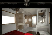 eleMMentは全長12メートルで中のスペースは30平方メートル。ベネチアンロイヤルスタイルのベッドルーム、ボタン1つでテーブルやイスを高くしてバーにできるラウンジ、レインフォールシャワー、インターネットに床下暖房など豪華な設備を備えている。