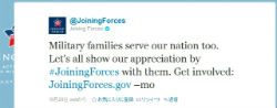 オバマ夫人はこの日、ホワイトハウスの公式アカウント@JoiningForcesに、「軍人の家族もわれわれの国家に貢献している」として感謝の意を表すメッセージを投稿した。メッセージの末尾には「mo」というイニシャルが入っている。オバマ夫人はこの日、ジル・バイデン副大統領夫人とともに、メジャーリーグワールドシリーズ第1戦の試合前式典に出席した。式典は退役軍人とその家族を慰労するものだった。