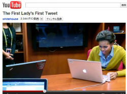 ミシェル・オバマ米大統領夫人がホワイトハウスの公式アカウントに初のツイート。その模様をYouTubeで公開している。