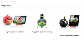 赤い鳥(79.99ドル)とヘルメットをかぶった豚(99.99ドル)と黒い鳥(99.99ドル)の3モデルあり、3.5ミリジャックで音楽プレーヤー、スマートフォン、タブレットなどに接続できます。赤い鳥は携帯やタブレット用のスタンド付き、黒い鳥はiPhone・iPadドッキングステーション付きで、豚はヘルメットがiPhoneドックになっています。