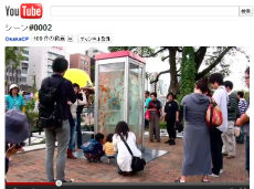 この作品「テレ金」は、公衆電話ボックスを巨大な水槽に改造したもの。京都造形芸術大学の学生による金魚部というグループの作品です。「大量に生産・消費される金魚のあり方を再考し、伝統文化として培われてきた金魚の美を改めて見直し、美しい日本の文化として新たに開花させることを目指す」というのがコンセプト。