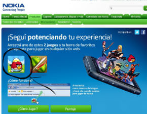 使い方は、Nokiaのアルゼンチンのサイトにアクセスして、Angry Birdsのアイコンをブラウザのブックマークバーにドラッグするだけ。好きなサイトにアクセスしてブックマークバー上のリンクをクリックすると、ゲームが始まる。