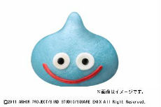 ドラクエ25周年を記念した商品で、スライムに似せて生地をブルーに色づけ、目と口をつけた。中身は本格的な肉まんだ。