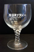 昭和っぽいポスター(左)と専用グラス(右)。ポスターの「あんたも好きねぇ。」はドリフのアレですね